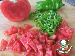В след на ними кинуть порезанные перец и помидор. Пряности. Варить минут 5. Готово.
