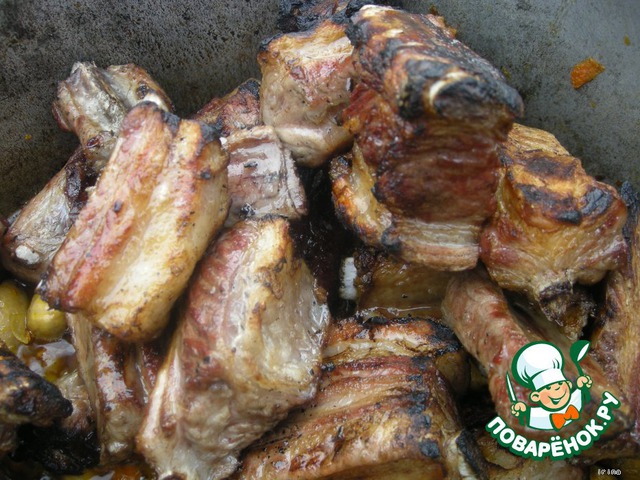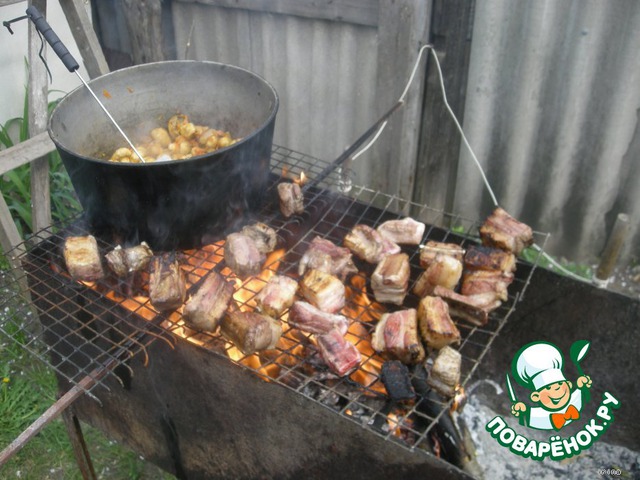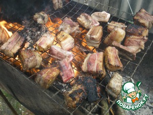 Ребра – помыть, разрезать на порционные куски и обжарить на мангале.