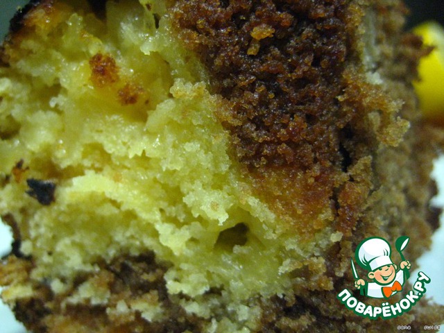 Розовое утро, солнечный день и темная ночь - это фруктово-лимонно-шок оладный кекс! Идея рецепта из французского журнала "MAXI CUISINE".