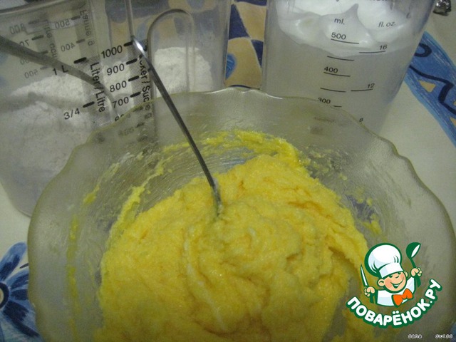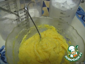 • Размягченное масло растираем с желтками, сахаром и ванильным сахаром;