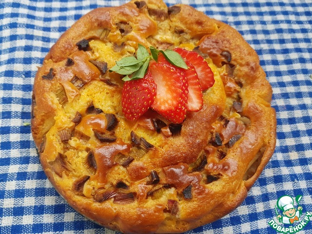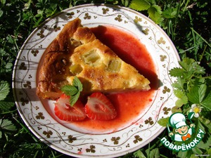 Ревень и клубника - что может быть актуальнее для мая месяца?! Что-нибудь сообразить из них? Легко! Пять минут - и запеканка с ревенем уже в духовке, еще пять минут - и у вас готов к ней изысканный соус. Накрыть стол как в лучших домах, достать ее, еще горячую, будто пронизанную ласковым майским солнцем, разложить на десертные тарелки и декорировать клубничным соусом. Хорошо живем!