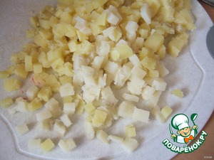 Очень маленькими кубиками нарезать картофель (не переварите, тогда будут маленькие кубики)