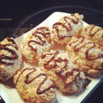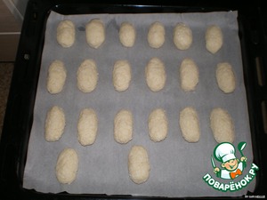 Выкладываем печенюшки на противень на значительном расстоянии друг от друга, т. к. при выпечкe они увеличатся в размере. У нас слиплись. Выпекаем в духовке 15-20 минут до светло-золотистого цвета.