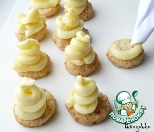 На наши печени выдавливаем крем в форме конуса. Можно из шприца, а я сделала из бумаги кулёчек. -