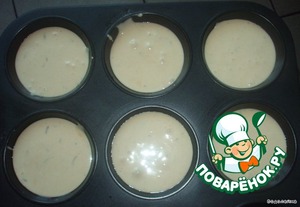 Формочки смазать масло и и влить в них наше тесто на 3\\\\4 объема. Поставить в разогретую до 160* духовку, примерно минут на 40.