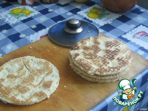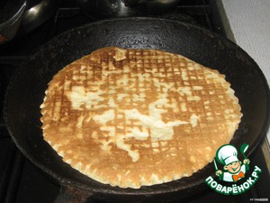 Жарить коржи на сухой горячей сковороде (жарятся минут 5) с каждой стороны,как блины