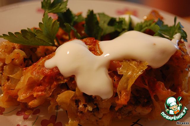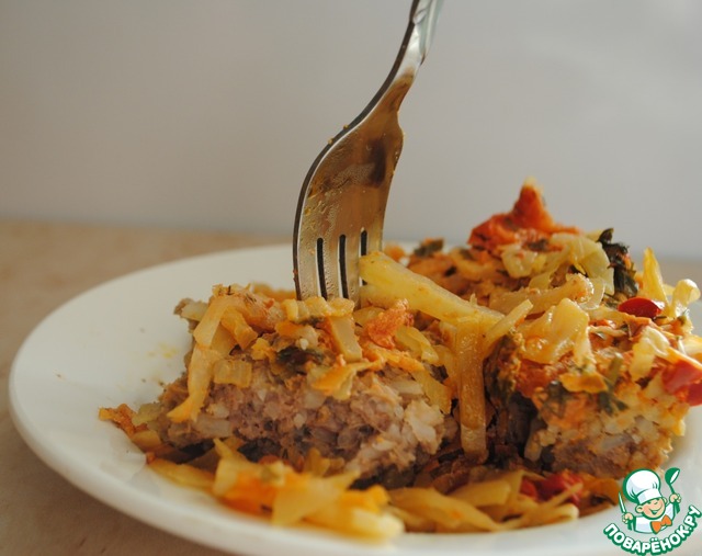Достойный рецепт в копилочку ленивых голубцов! Морковь натерла на крупной тёрке, готовила на плите, добавила черный перец горошком и лавровый лист. В духовку поставила минут на 10, чтоб заколеровался верх блюда. Очень вкусно!