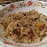 • Рис отварим до полуготовности смешаем с фаршем. Солим. Перчим.