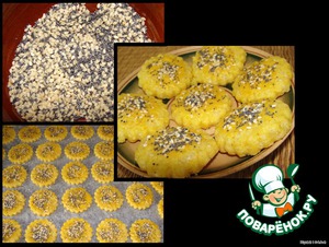 Печенье смазать желтком и посыпать смесью мака и кунжута.