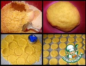 Смешать муку, тертый сыр, соль, карри и маргарин - замесить быстро тесто.