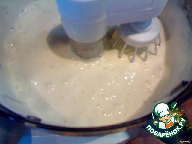 Взбивать яйца с сахаром на высокой скорости в течение пяти минут до образования крепкой пены