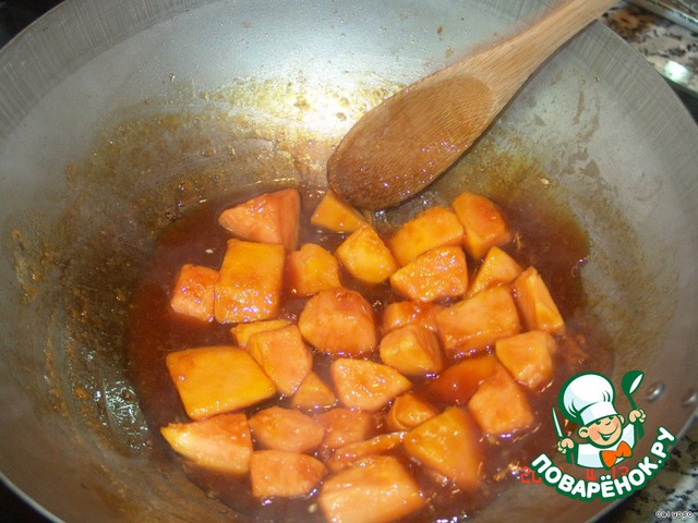 Таким способом можно сделать необычным и вкусным самый заурядный и привычный фрукт. Особенно. если он куплен не сладким. Фрукты подойдут любые: яблоки, груши, ананасы, дыни, бананы... Папайя - в моем варианте. Можно использовать и сухофрукты. В Тунисе пробовала варианты с курагой, инжиром и черносливом.. Такой десерт очень хорош в сочетании с блинчиками или оладьями.