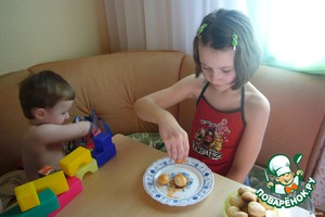 Не думала, что созрею.. Не корысти ради, а потому что собралась очень тeплая компания. ))) И как заблестели глаза у дочки, когда сказала ей, что печeм печенье на конкурс "Silver line на радость детям". Сладкое песочное печенье попытались оформить в виде ягодок (поискала через поиск, вроде, такого нет)