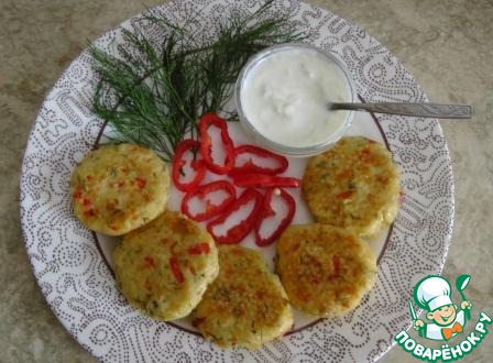 Чеснок пропустить через чесночницу. Посолить и поперчить по вкусу. Добавить зелень. Хорошо всe перемешать, сформировать круглые лепeшки и обжарить на сковороде с растительным маслом. -