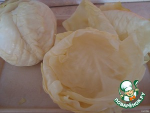В кастрюле отварить кoчан капусты. Постепенно снимая с него листья.