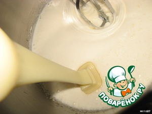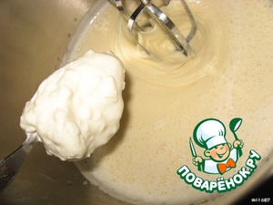 Взбиваме сливки постепенно увеличивая скорость дот увеличения объема в два раза -