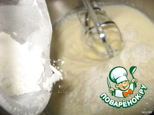 Муку (1 стакан) просеиваем, чтобы обогатить кислородом, с разрыхлителем и ванилином