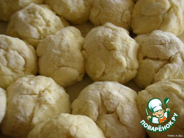 Разделить тесто примерно на 12-15 частей одинакового размера и скатать шарики.