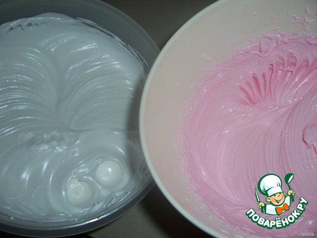 сливки взбить отдельно с 0,5 ст. сахара, потом добавить загуститель для сливок.