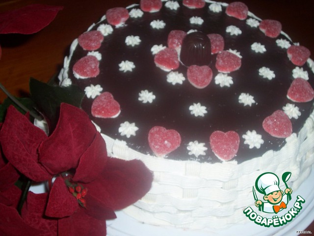 яйца хорошо растереть с сахаром, добавить муку, разрыхлитель, ванильный сахар, всё перемешать и испечь бисквит, в форме 26 см диаметром.