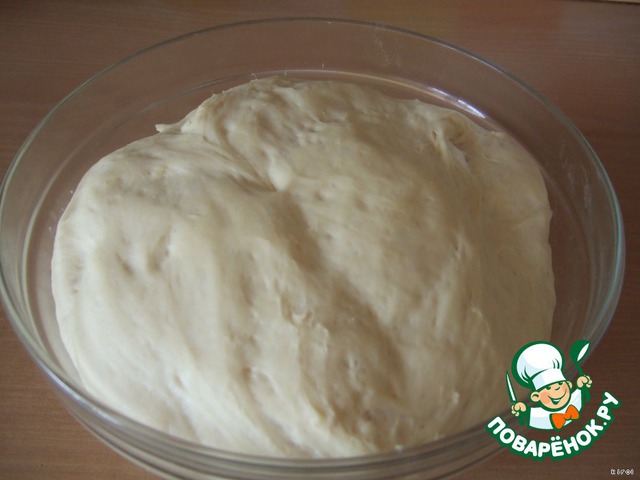 Тем временем тесто подошло (у меня оно поднималось пару раз, и я его обминала)