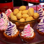 Готовые корзинки смазываем джемом а сверху белковый крем, крем выдавливаем из кондитерского шприца или мешка.