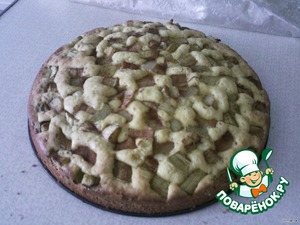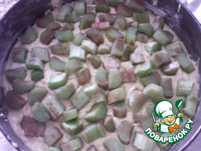На тесто выкладываем кусочки ревеня и кладем в духовку на 25 минут.