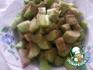Ревень чистим и режем на кусочки, обсыпаем корицей.