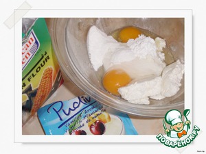 Добавить пудинг, яйца, крахмал - смешать ингредиенты.