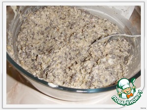 Пропустить остывшую курицу с луком и грибы через мясорубку