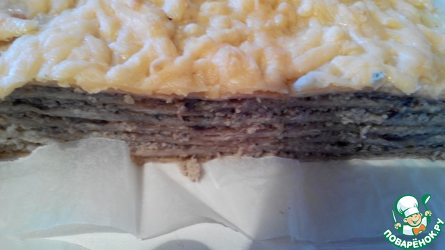 Так все 5 коржа, сверху и по бокам обсыпать тертым голланским сыром