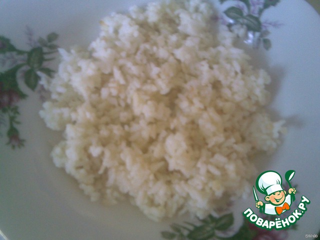 • Отвариваем, остужаем и выкладываем первым слоем рис (а у меня была оставшаяся рисовая каша)
