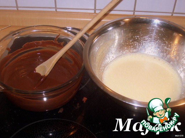 • Влить в шоколадную смесь и аккуратно перемешать.