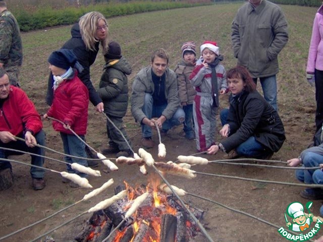 Stockbrot. Кто сказал, что булки не растут на кустах? Предлагаю всем повеселить своих детишек. Ни один ребeнок не останется равнодушным к такому способу выпечки хлеба. А родители тем временем могут отвлечься, съесть по шашлычку и выпить кружечку пива.