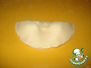 Тесто разделить на 2 части, потом каждую на 10 небольших шариков. Каждый шарик обвалять в муке и поставить в холодильник на 3 часа, правда, у меня простояли только 2.
