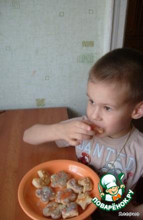 Печенье само по себе очень милое, но для конкурса мы его украсили - смазали сгущенкой и оформили разноцветными посыпками.