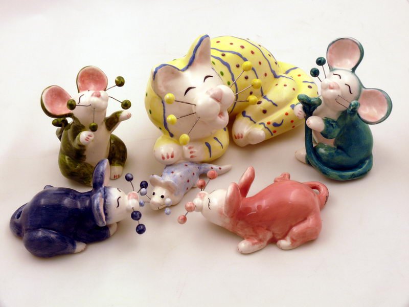 Берем приготовленные шарики (головы). Наметим ушки, слегка прищипнув кончиками пальцев. Глазки.