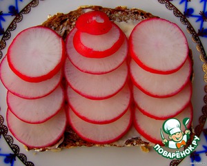 Редиску нарезать, разложить на намазанный маслом хлеб.
