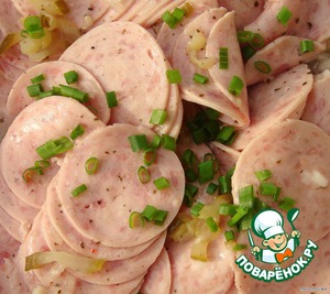 Салат из колбасы (Wurstsalat): Колбасу очистить от оболочки и нарезать кружками или соломкой. Лук и маринованные огурцы - мелко нарезать. Сделать соус, смешав все ингредиенты. Залить салат соусом, хорошо перемешать и поставить в холодильник минимум на полчаса мариноваться.