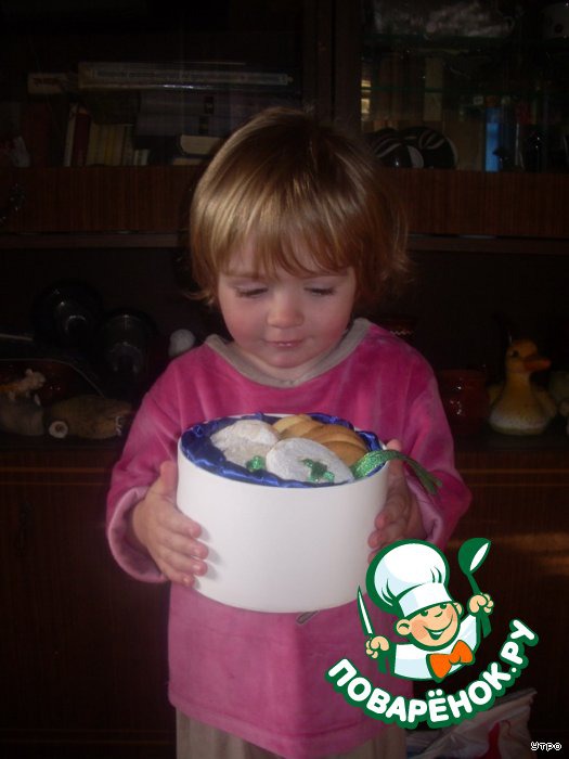 И вот мои пуговки преодолели 100 км и приехали на дачу к дочке :) Сначалa она подумала, что это какая-то игрушка, но когда открыла коробочку и унюхала ванильный аромат, то радостно прокричала: "ам-ам!"