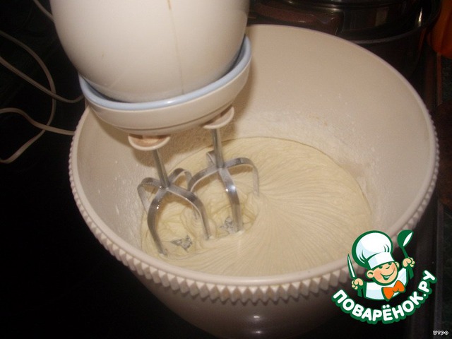 Добавляем постепенно туда ванильный сахар, муку и крахмал. -