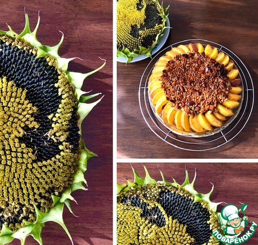 Семечки в карамели, да еще с персиками! Попробуйте, от одного вида этого пирога поднимается аппетит.
