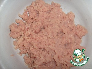 Можно нарезать куриное мясо соломкой, как на бефстроганов. -