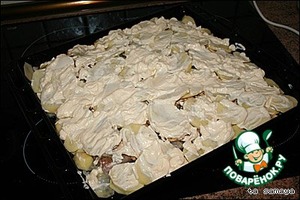 Выкладываем ее равномерно на грибы (ее, кстати, тоже посолить сверху не мешает).