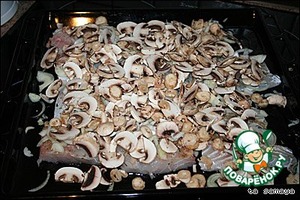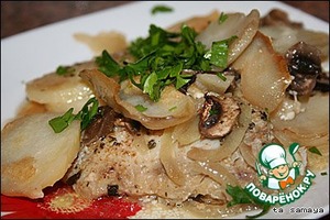 Рецепт «Окунь, запеченный с картофелем и грибами под майонезом»: