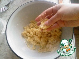 Сперва готовим песочное тесто, которое мы будем выпекать в разъёмной форме: смешиваем муку, размягчённое масло, ванильный сахар и просто сахар.