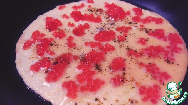 омлет вкуснящий получился, конечно блюдо не на каждый день, солить не стоит,т.к. икра итак соленая, очень вкусно, понравился,спасибо за рецепт!