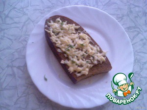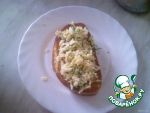 Выкладываем бутер на тарелочку, сверху присыпаем натёртым на крупной тёрке сыром вперемешку со второй половиной петрушки. -