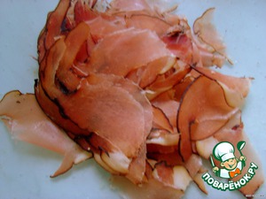 Сырокопченую ветчину или бекон обжарить почти на сухой сковороде. Украсить гречневую башенку полосками (кусочками) бекона.