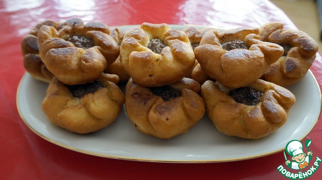 и защипать тесто вокруг начинки, оставляя серединку открытой.
